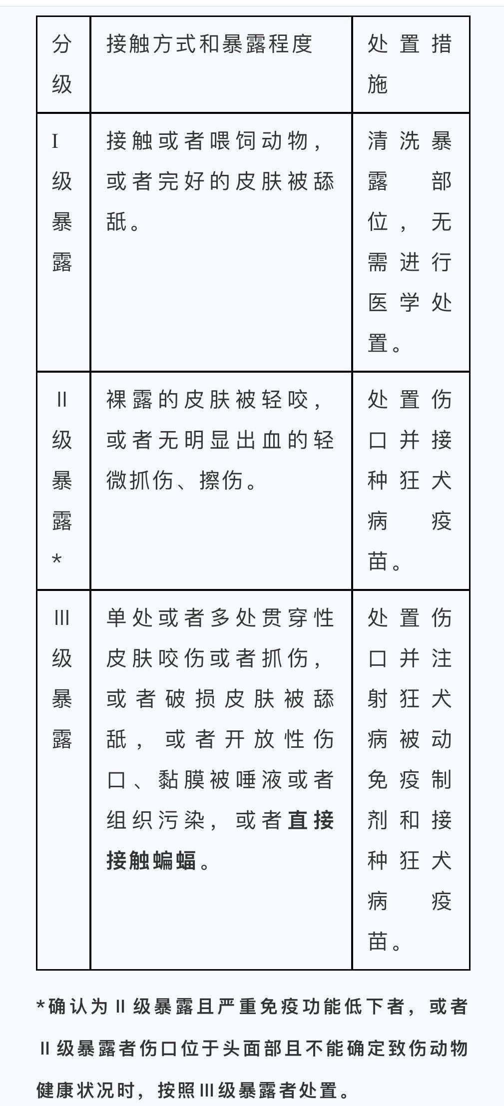 第三掌盘策略,根据接触方式和暴露程度将狂犬病暴露分为三级,只有Ⅰ级和Ⅱ级暴露适用,Ⅲ级暴露风险大不建议采用。