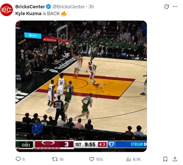 这场比赛最扎眼的当属0分哥凯尔-库兹马,他在今年4月19日对阵步行者的比赛中22分钟里怒砍0分0篮板0助攻0抢断0盖帽,这张图在本场比赛的赛后又被雄鹿球迷所疯转。